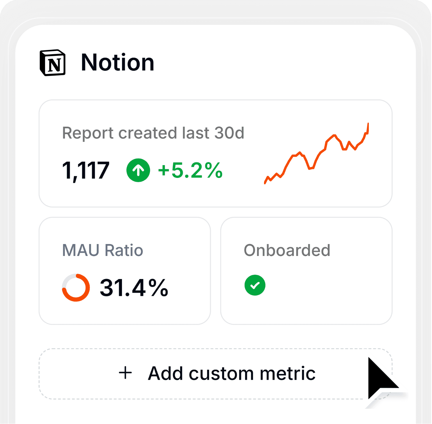 Create custom metrics by combining existing data. Define KPIs in plain language, track them per account, and spot changes instantly.
