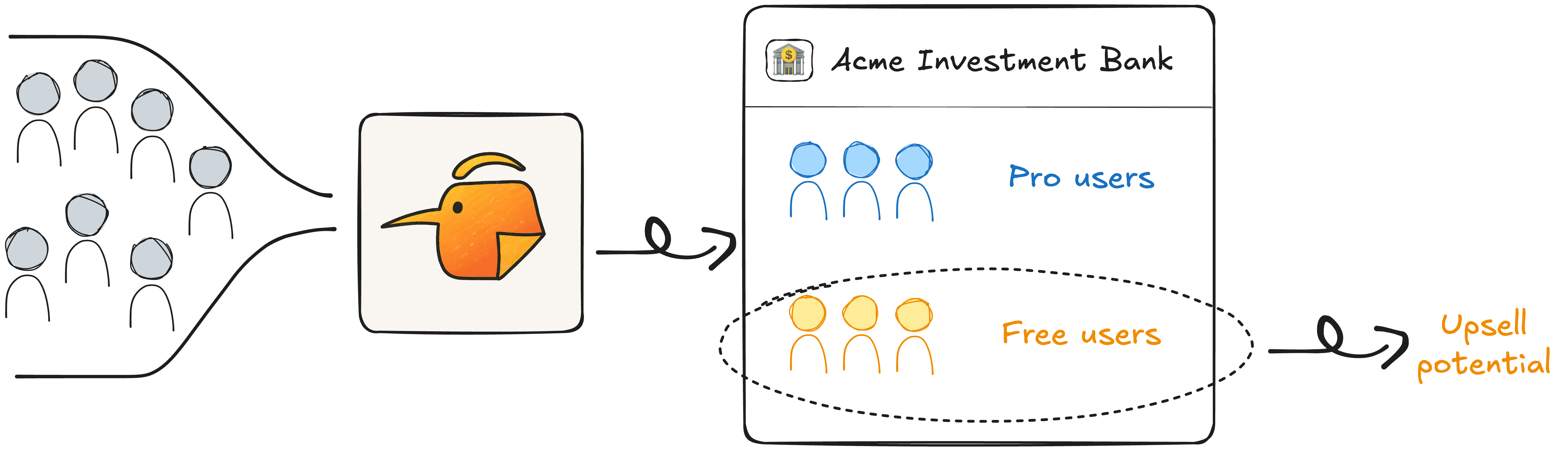 Through Userlens, the sales team can identify users from accounts that have pro users, and non-pro users that are active.
