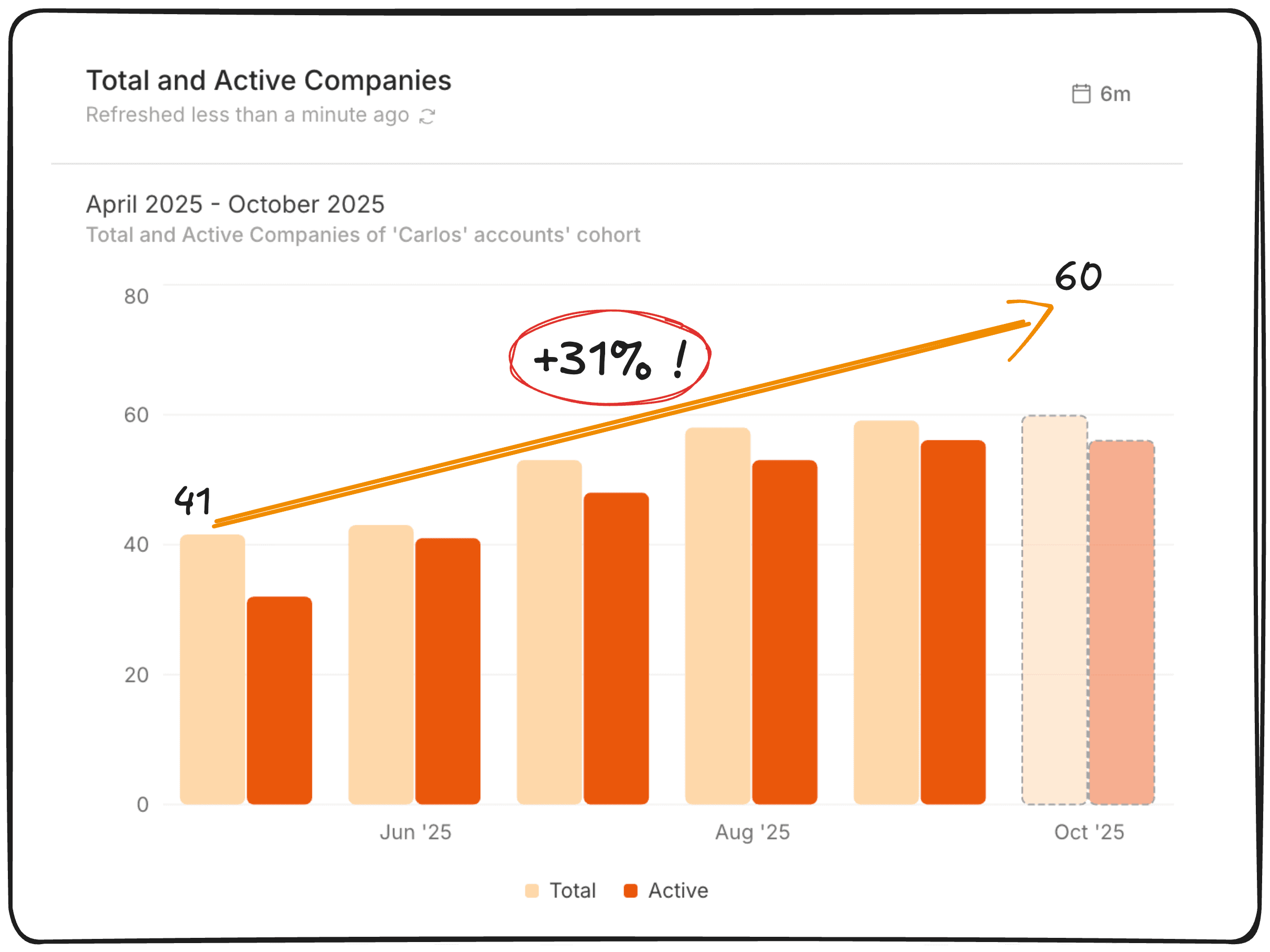 Without running calculations in their head and going through multiple different pages and graphs, Quartr employees can immediately get a clear understanding of which users in a certain account need to be reactivated.